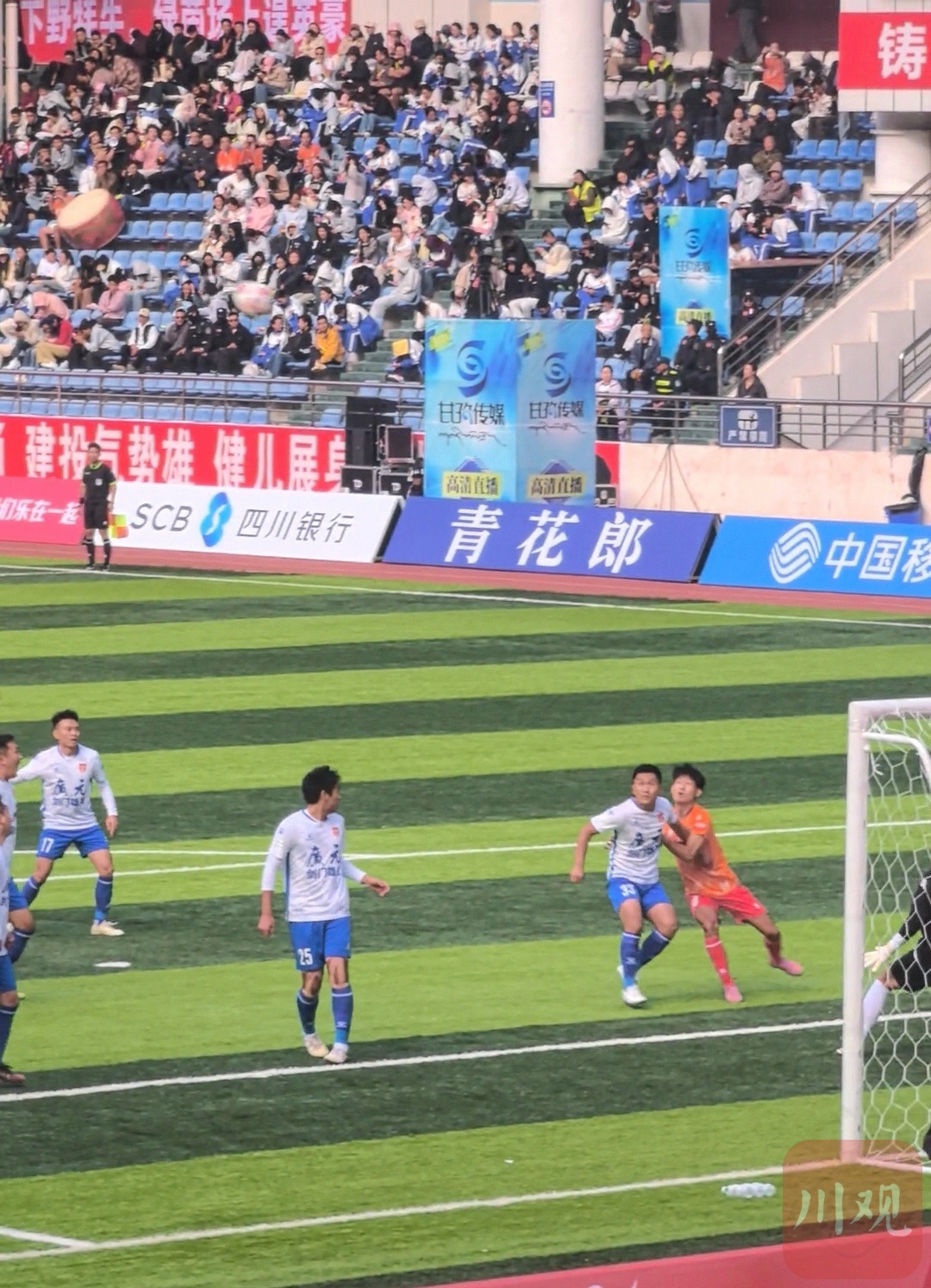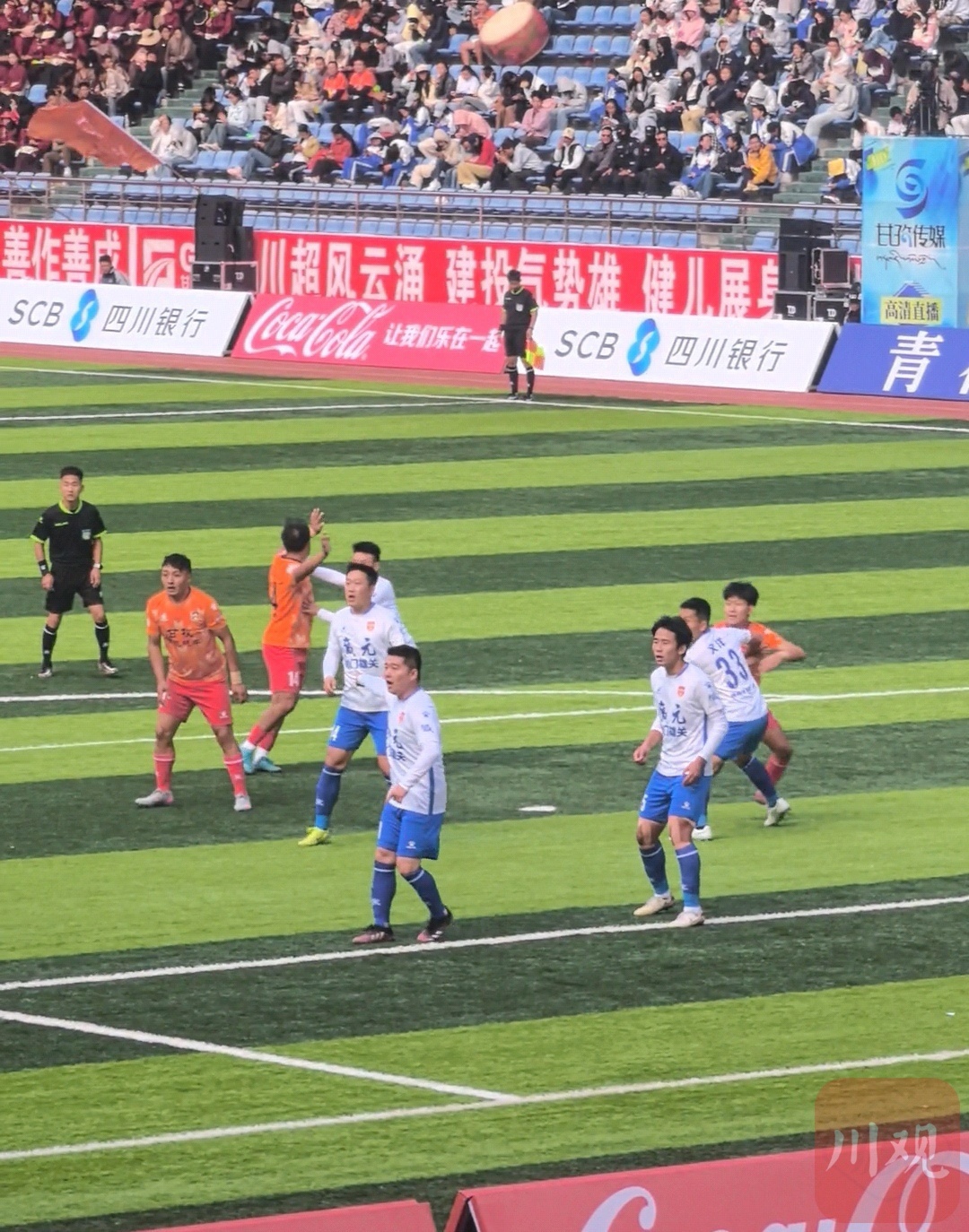比赛在康定体育场进行,广元队为适应高海拔环境,早在10月7日就提前五天抵达康定备战。上半场比赛,甘孜队展现出明确的传控打法,试图从中路突破扯开对手防线。