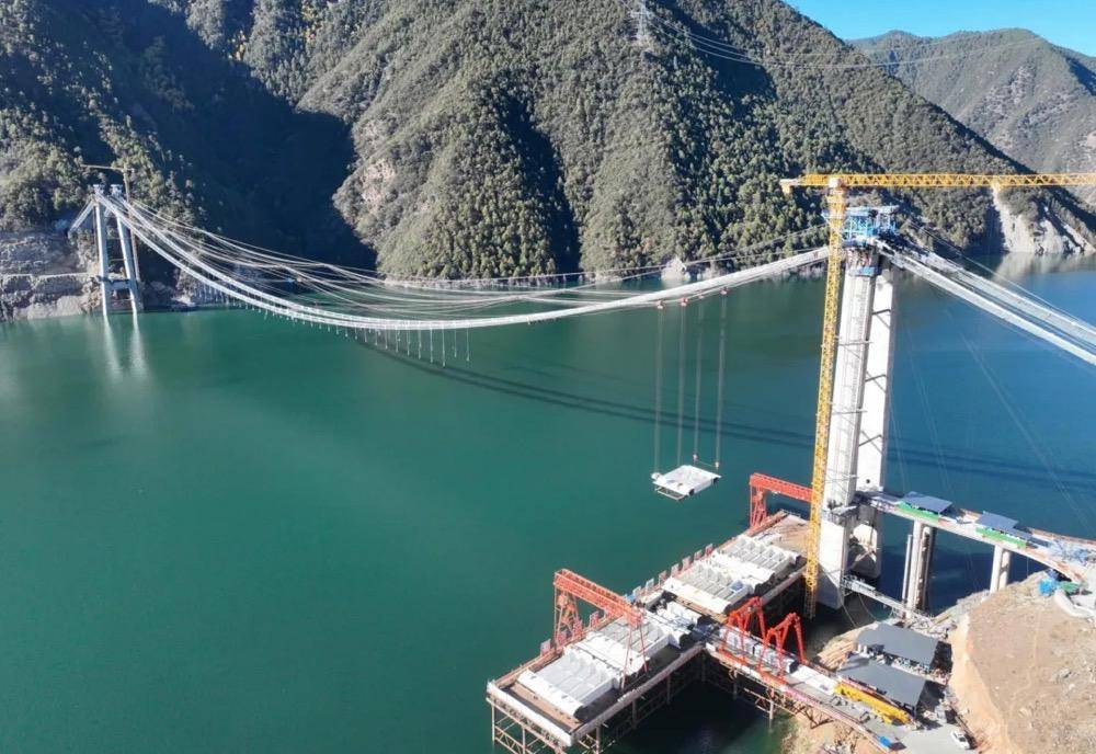 雅砻江特大桥作为国道318提质改造普所路项目的控制性工程,位于四川省甘孜州雅江县普巴绒乡与理塘县所地村交界处。大桥采用单跨双边箱组合梁悬索桥设计,全长748.06米,主跨达650米,是川西地区高海拔地区的重要悬索桥,未来将作为新增省道434的关键组成部分,为进一步织密区域交通网络打下了坚实基础。