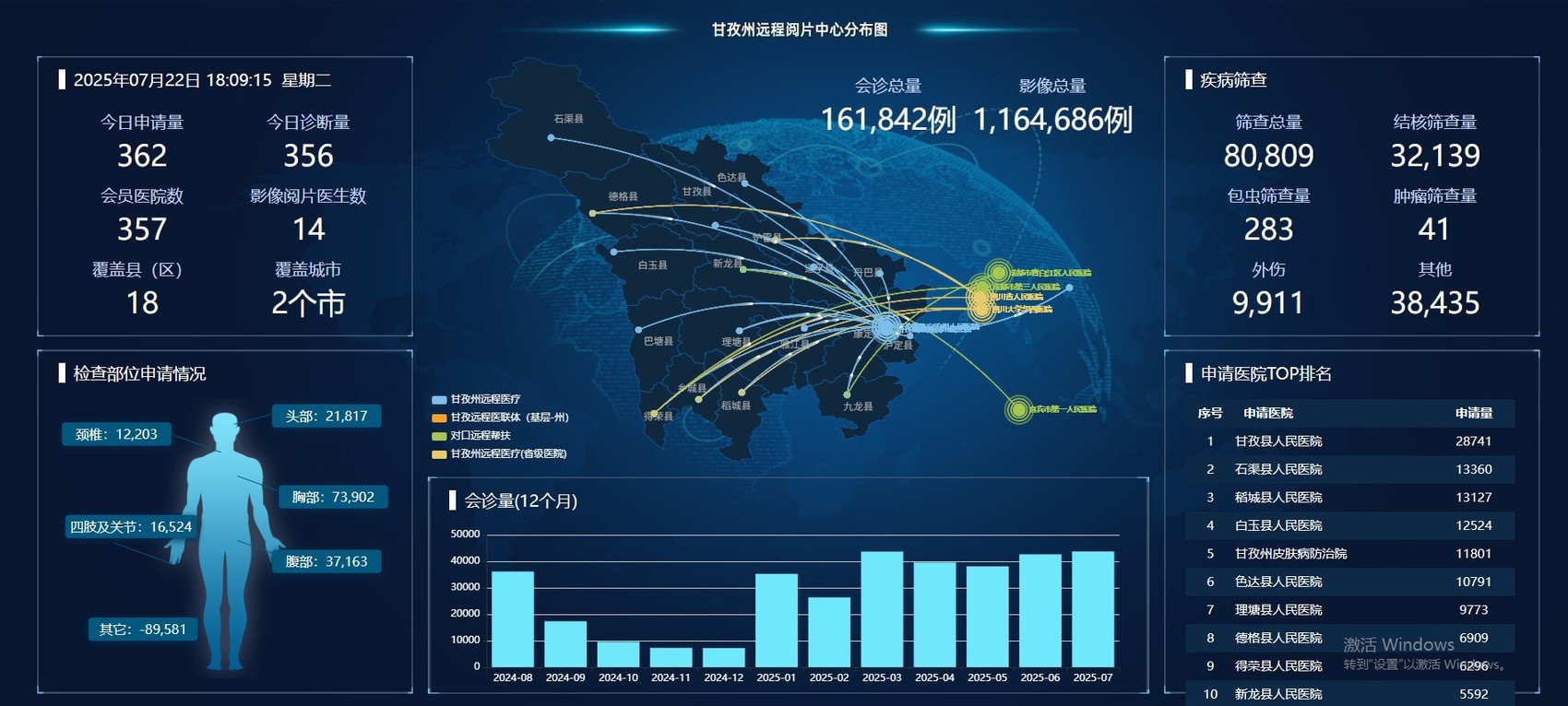 值得一提的是,在四川省卫生健康委的大力支持和省卫生信息中心的技术指导下,甘孜州作为全省医疗影像互认试点单位之一,已率先完成州人民医院、康定市人民医院等27家州内医疗机构的检查共享调阅互认工作,并实现了与四川大学华西医院、四川省人民医院等省级医疗机构的跨区域影像调阅,为疑难重症患者的远程会诊和转诊提供了坚实支撑。