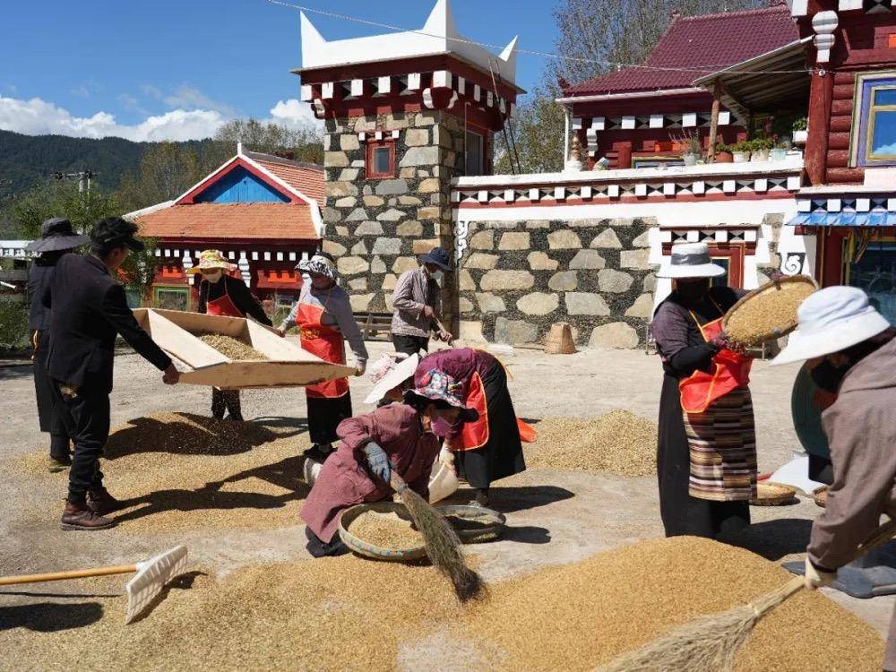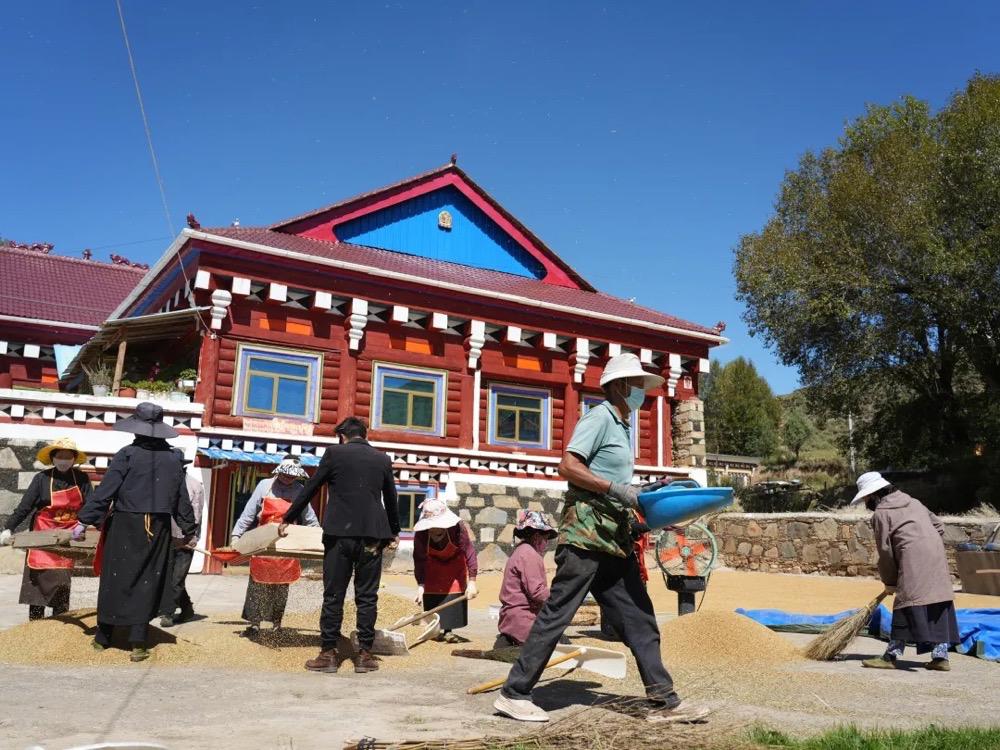 “全村50户人家,共1926亩地,最少的农户有30多亩,多的达上百亩,单家独户收割晾晒根本忙不过来。”村党支部书记格绒介绍,每年秋收,村里都保持着老规矩:哪家忙不过来,大家就主动凑过去帮忙,不用招呼,更不谈报酬。春耕、秋收等农忙时节,“一家有难处众人帮,一户丰收全村喜”的理念,早已深植在每位村民心中。