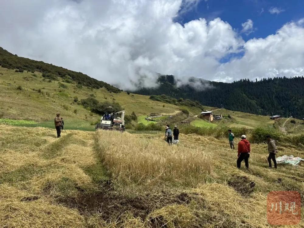 机械化并未取代传统,反而与传统劳作形成互补。田间地头,既有农机高效作业的现代场景,也有农户分工协作、手工收割捆扎的传统画面,每一个俯身的动作里,都藏着对土地的敬畏与对丰收的期盼。远处山峦云雾缭绕、林海苍翠,近处农机轰鸣与农户劳作相映,构成了沙马乡秋收最鲜活的模样。
