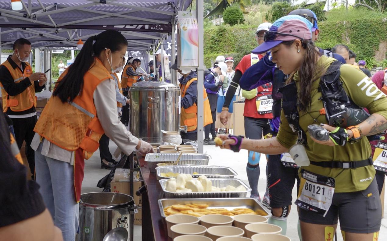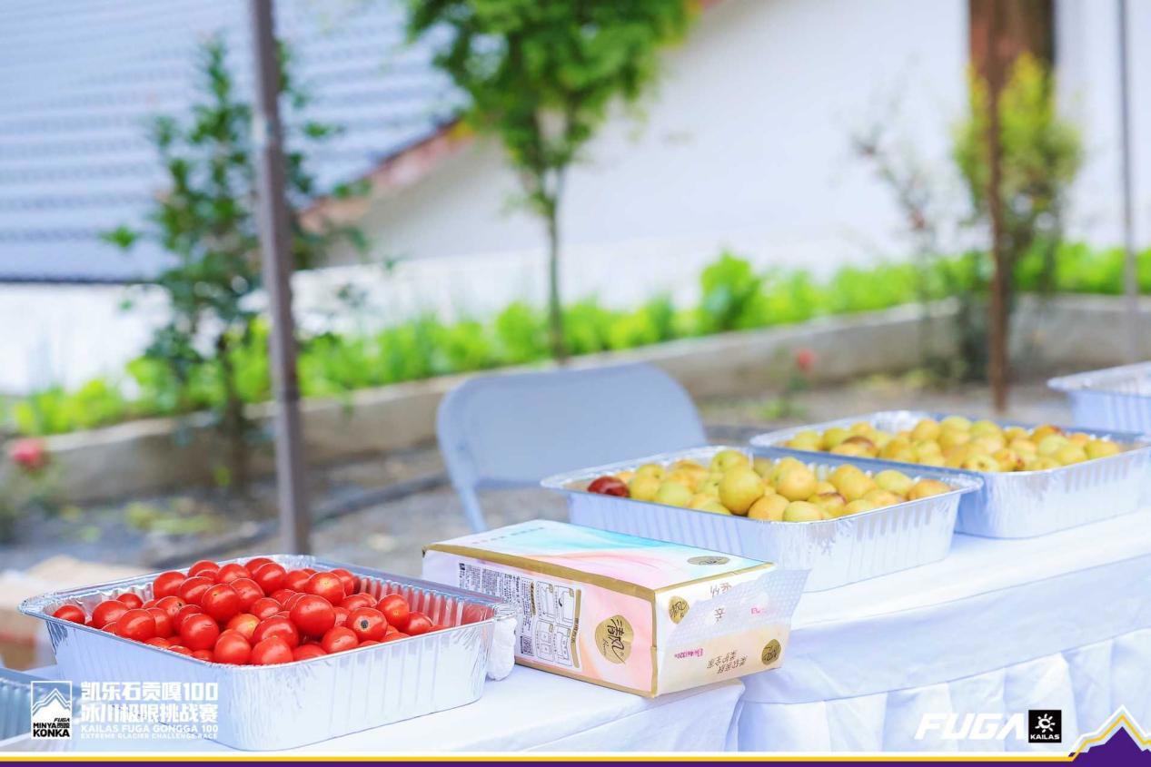 途中的15个补给点更藏着“地域惊喜”:青冈坪村的彝族香猪肉、石墨豆花,游客中心的磨西凉粉、青稞饼……甘孜州追峰者户外运动有限公司负责人说:“就像大型流水席,途经村的村民都来帮忙,用本地食材给选手加油。”