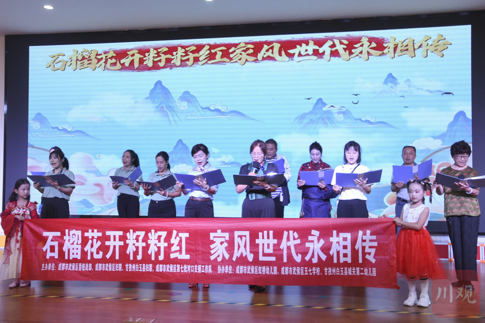 活动在文艺展演中拉开序幕。武侯区第七批对口支援工作队的的7名队员通过视频送上了祝福。现场,两地家庭通过实时连线互动,共同参与别开生面的亲子活动,在欢声笑语中生动传递着“中华民族一家亲”的深厚情谊。活动巧妙地将好家风传承、民族团结教育与节日氛围相融合,让孩子们在亲身体验中深刻感受中华优秀传统文化的独特魅力,进一步增强文化认同与民族自豪感。