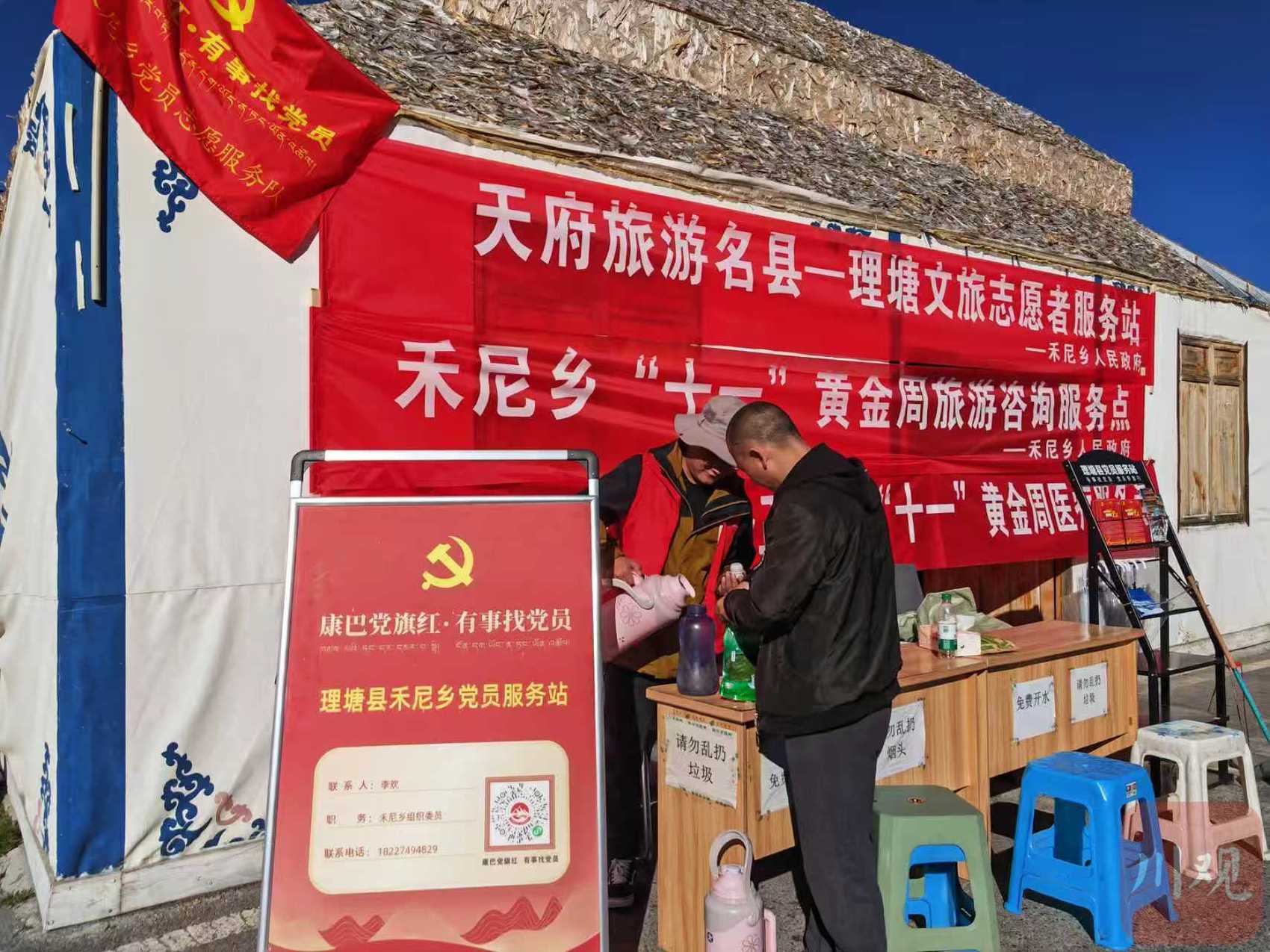 这座海拔逾4000米的小城,以系统化保障、沉浸式体验与无处不在的“志愿红”,让远道而来的游客感受“安心游、暖心留”。为应对旅游高峰,理塘在景区及沿线设29处“天府旅游名县志愿者服务站”,民警、医生与志愿者联合值守,累计开展医疗救助330余次,提供血氧检测、氧气补给与药品服务,还发放宣传资料1.8万余份。