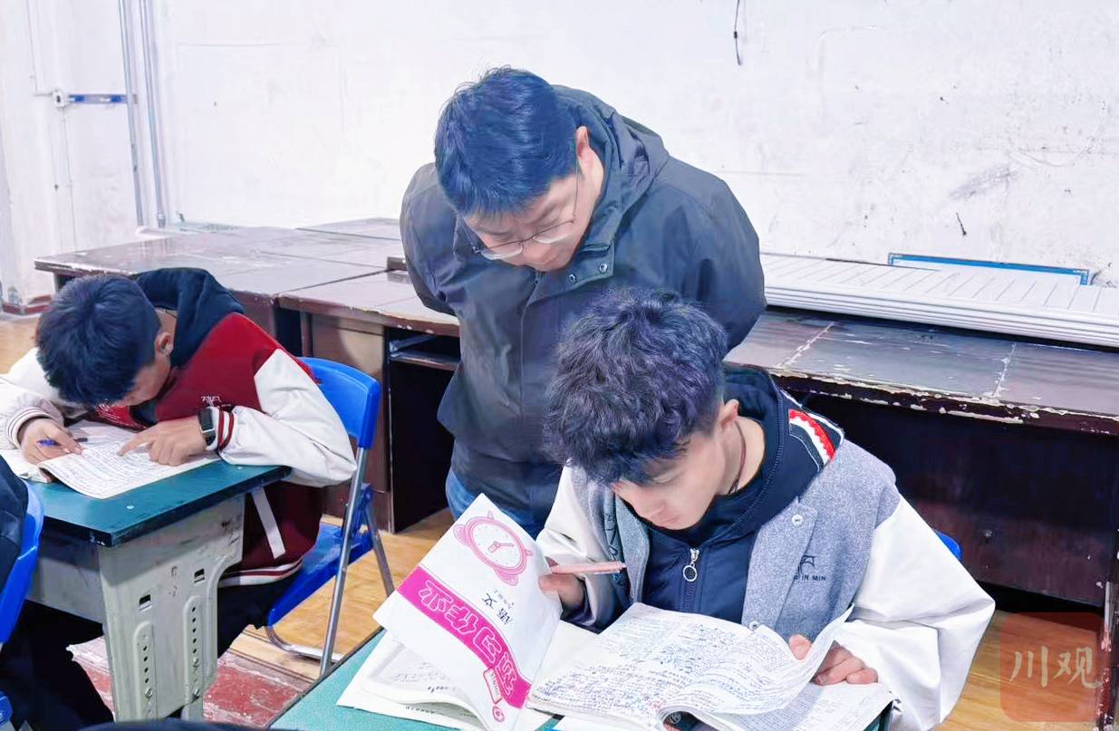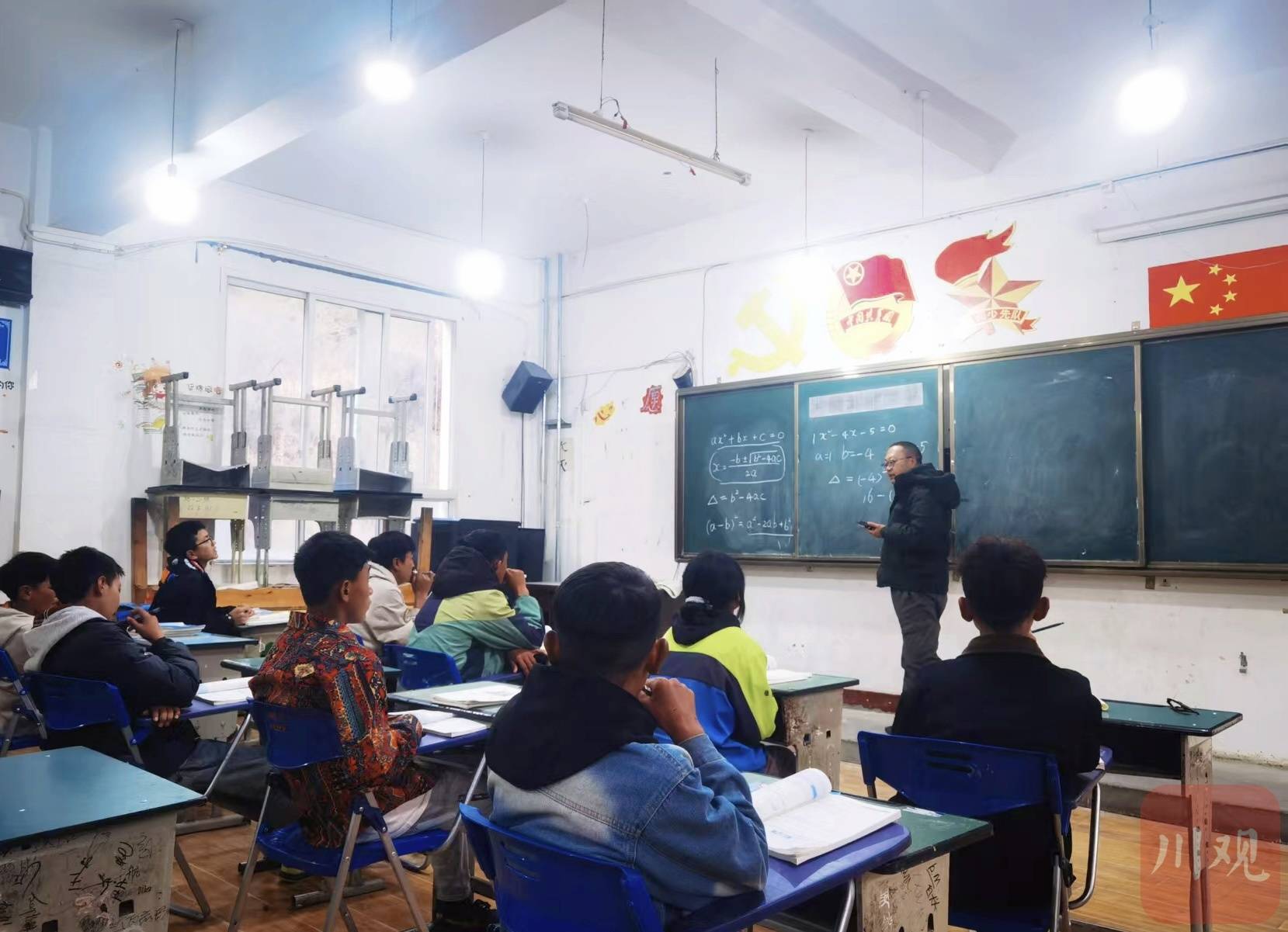 冬夜的白玉县,室外气温已逼近零下,但县中学教学楼里依然灯火通明。这两天,初三“武侯班”教室内,藏族学生多吉扎西正专注地演算数学题,当得出正确答案时,他兴奋地举起练习本:“王老师,这道一元二次方程题我做出来了!”正在巡课辅导的“老师”王伟鹏立即上前,在《每日辅导跟踪表》上为他郑重贴上一颗红色五角星。