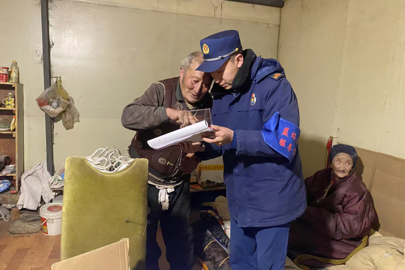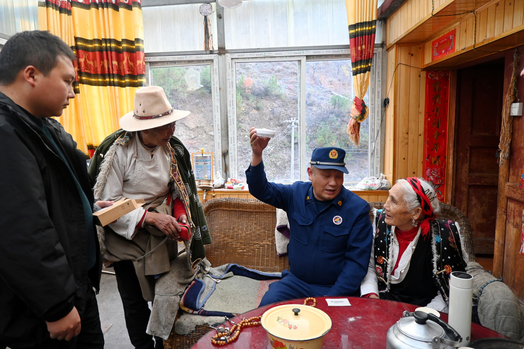 党员先锋队顶风冒雪开展“敲门行动”。队员们踩着积雪、攀爬山路,为独居老人逐户安装智能烟感报警器,并现场调试至最佳状态。“孃孃,报警器响了要马上离开,安全最重要!”在高海拔地区的炉霍县下罗科马乡,队员们用藏汉双语反复叮嘱,将专业的防火知识转化为“锅庄跳到几点关火”等生活化嘱咐,让安全知识真正入耳入心。