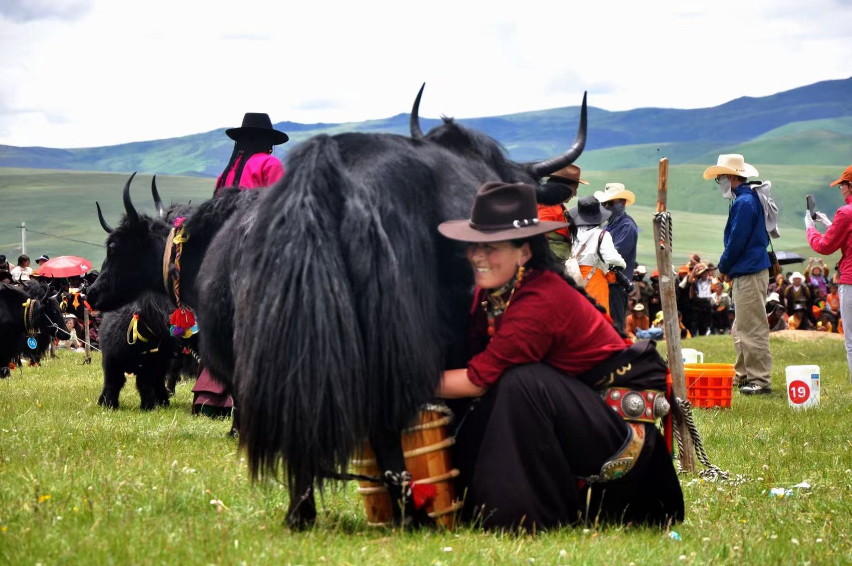 与此同时,数字化赋能让产业管理更精准。该县搭建“耳标+移动网络+服务器+智慧动监云”系统,通过电子耳标、DNA测序等技术,对牦牛体尺、产奶量等数据全方位测定,建立数字化系谱档案,实现保种、防疫、销售全流程溯源。