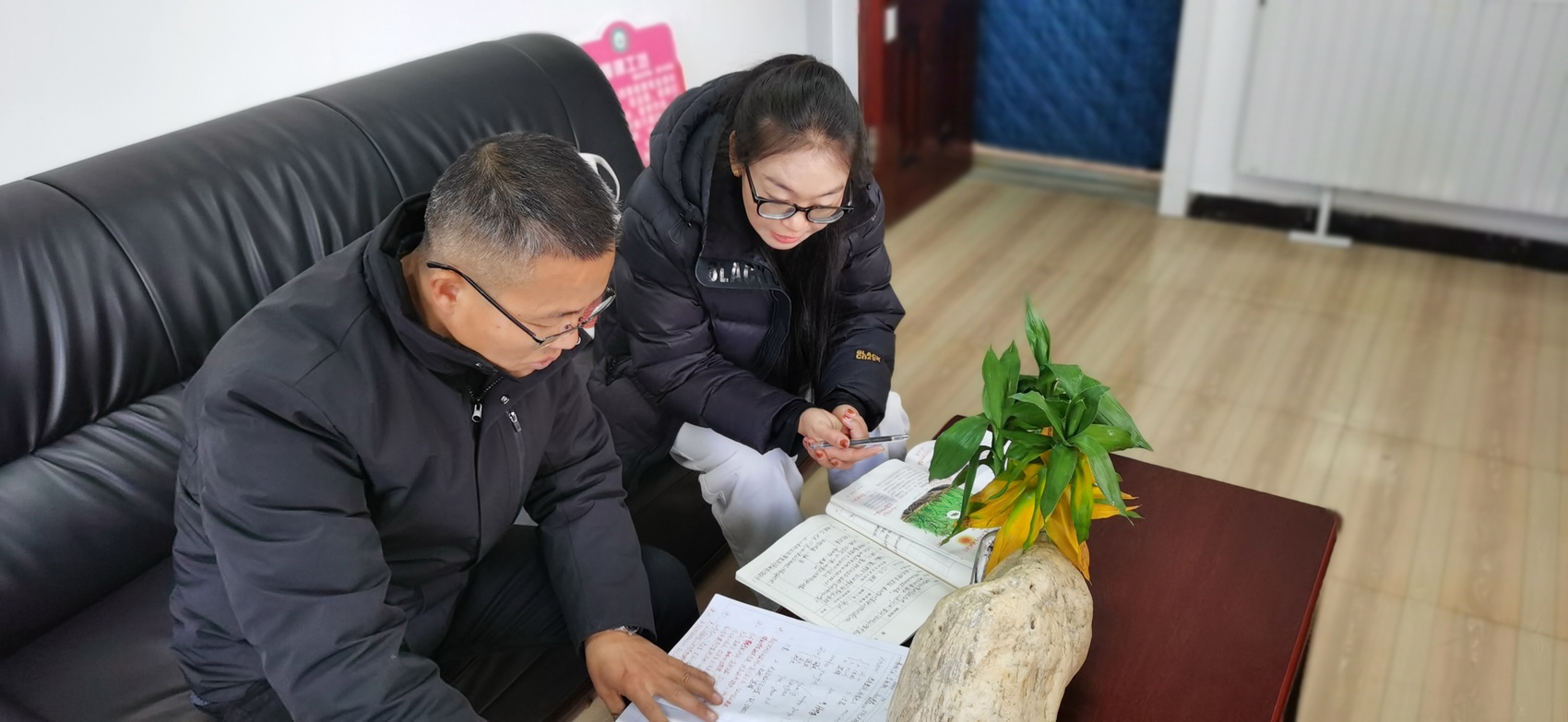 邱永彬校长与帮扶徒弟白玛康珠评课交流。
