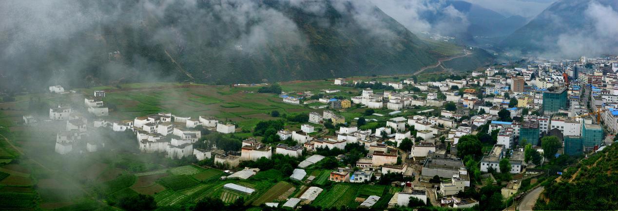 乡城,藏语意为串珠之地,自古为多元文化交融之地。历史上的茶马古道、藏彝走廊纵贯乡城,传播着蒙古、纳西和汉等民族的文化基因。当地居民最终在康藏建筑基础上,融汇井干式结构、碉房造型以及土筑墙体技艺,创造出融合藏、汉、纳西三大民族风格与艺术审美的建筑——白色藏房。乡城白藏房是康巴地区特有的土木结构民居建筑,为乡城“三绝”之首。其建筑体系融合康藏传统营造技艺与纳西族、汉族建筑艺术特点,形成独特的梯形土木结构体系。