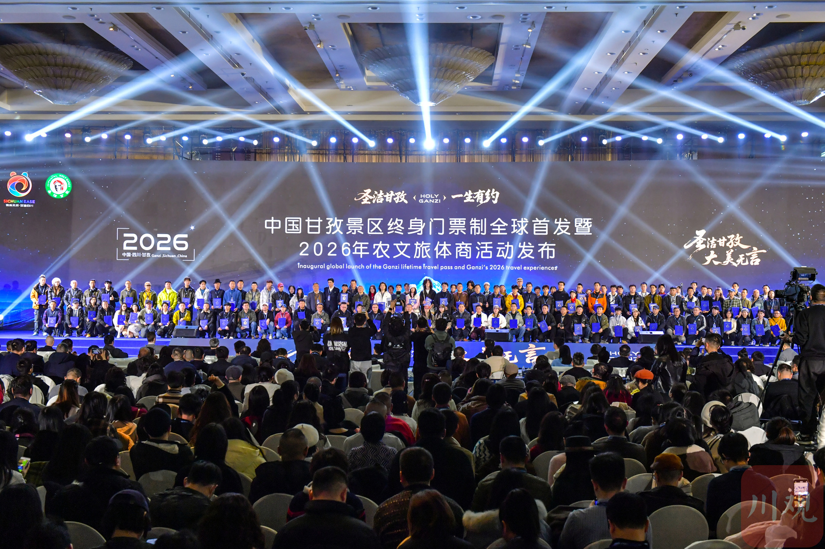 “中国甘孜景区终身门票制首发暨2026年农文旅体商活动发布”活动现场。(李向雨摄)