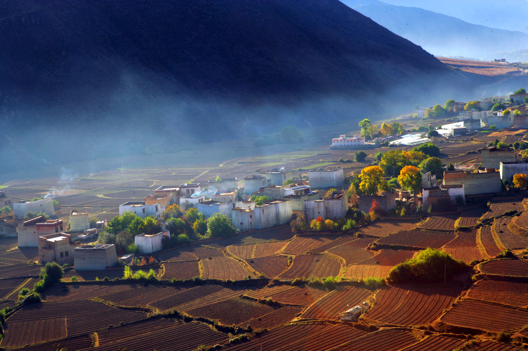 白藏房错落分布在青稞田间