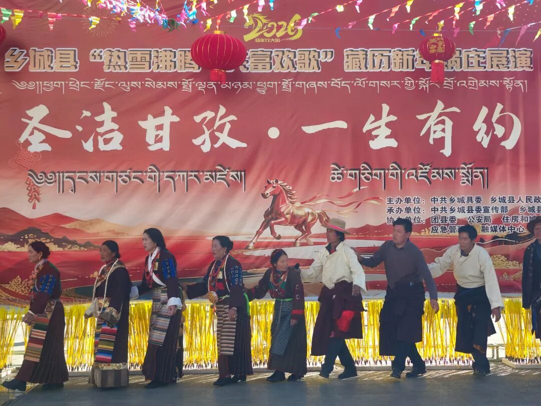 2月19日至20日,“圣洁甘孜・一生有约”乡城县2026年“热血沸腾,共富欢歌”藏历新年锅庄展演活动在香巴拉休闲广场精彩上演。沙孜村、东宫村、登仲村、马色村四支表演队伍轮番登场,以原汁原味的乡城原生态疯装锅庄,为全县人民献上两场洋溢民族风情的文化盛宴,在欢歌曼舞中喜迎春节与藏历新年,尽显乡城人民“智慧勤劳、崇文重教、诚信包容、敢为人先”的精神风貌。