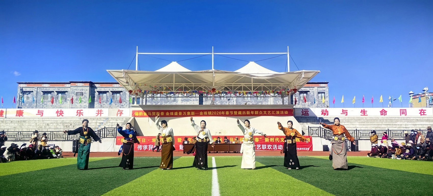 2月19日大年初三,一场由稻城县金珠镇举办的群众文艺汇演活动在稻城县全民健身体育场举行,现场洋溢着喜庆祥和的节日气氛,金珠镇的群众用最热情的歌舞赞美家乡、歌颂党恩、喜迎新春。