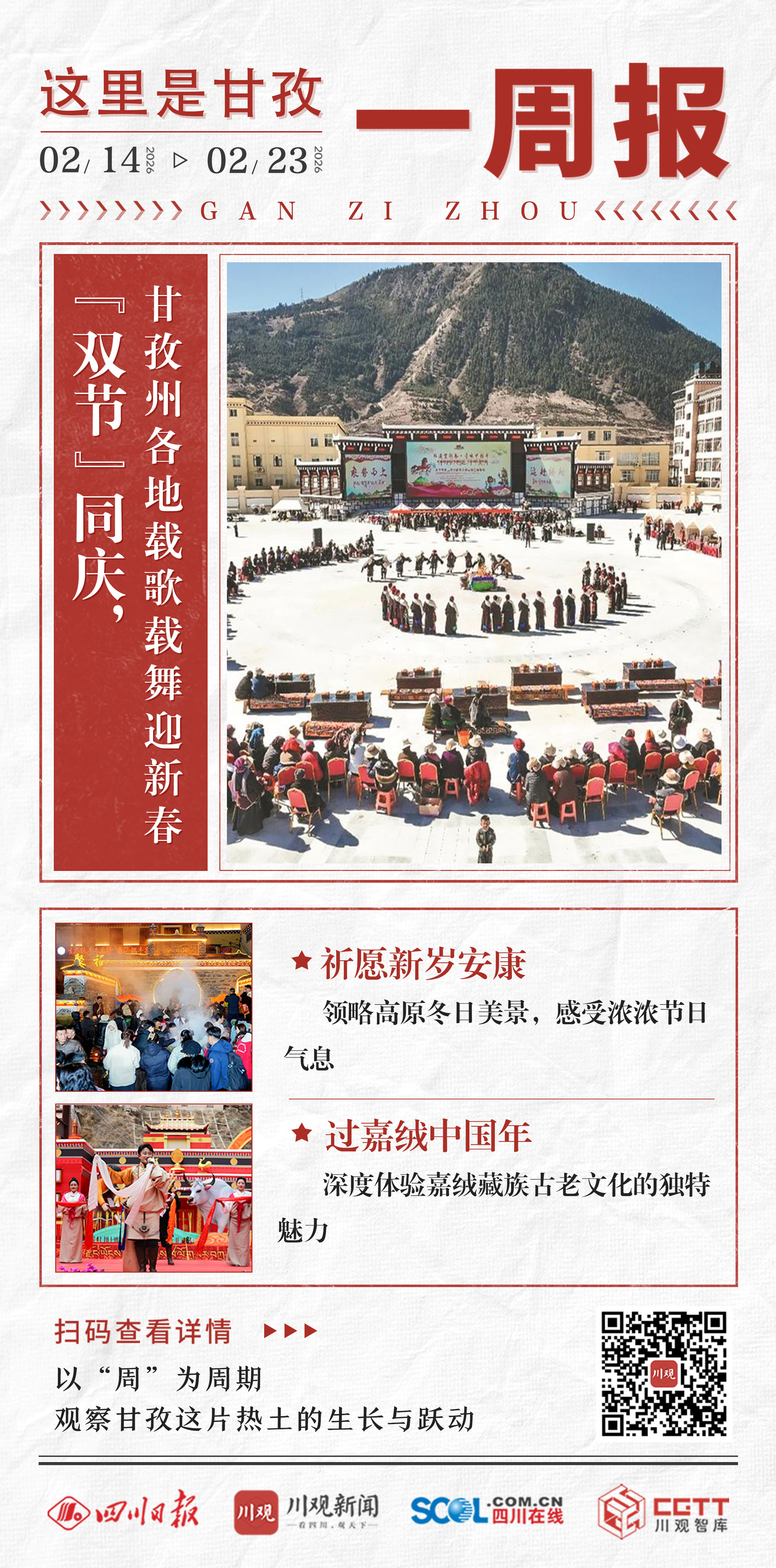 刚刚过去的一周多时间里(2月14日—2月23日),甘孜州旅游热度节节攀升,在电影《飞驰人生3》的加持下,五湖四海的游客涌入甘孜。同时,今年的2月18日,也恰好是藏历火马年新年初一。春节与藏历新年“双节”同庆,游客们不仅欣赏到了高原冬日的美景,更感受到了甘孜州浓浓的节日气息。