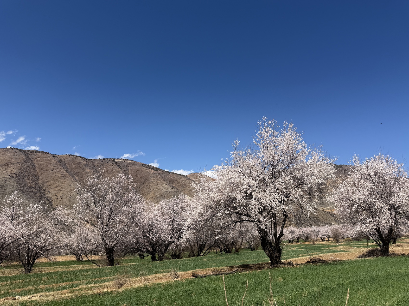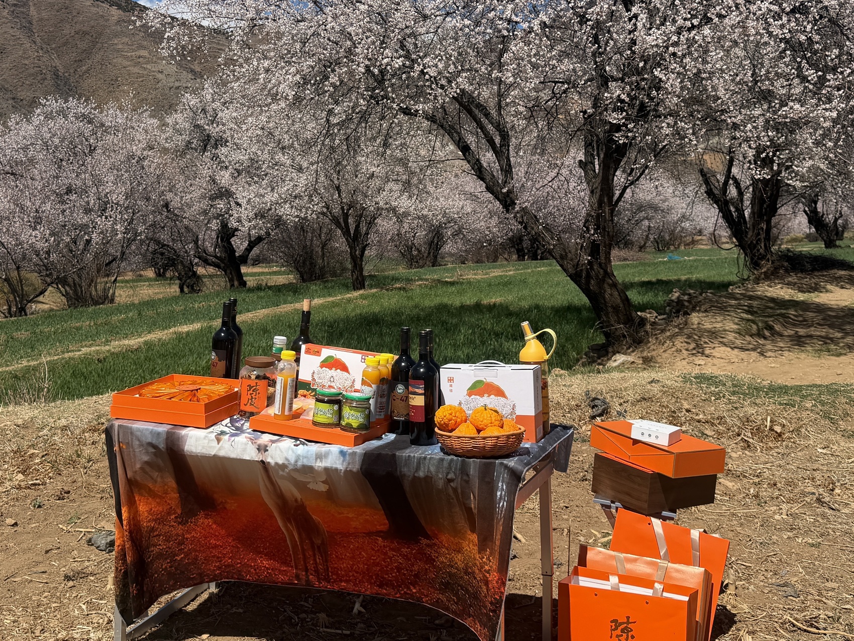 三月的得荣,万亩桃林正迎来一年中最绚烂的季节。粉红的桃花缀满枝头,远处雪山皑皑,近处麦田青翠。3月26日,一场别开生面的“桃花树下品红酒”活动在这片高原桃林中拉开帷幕。记者深入现场,亲身体验这场将美酒、美食、文化与自然景观深度融合的沉浸式游园会。