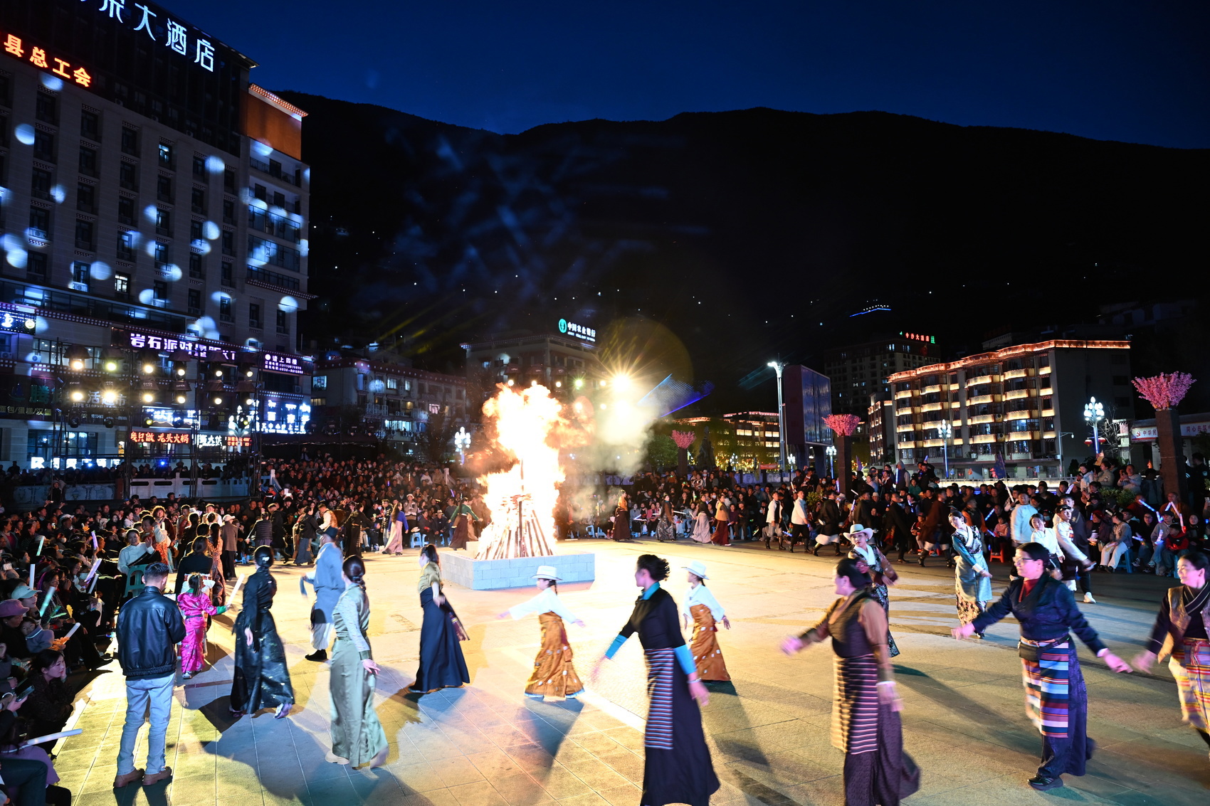 活动最后,舞台边界被彻底打破,全场观众手牵手,围绕着篝火围成圆圈,跟随本土乐队的即兴演奏,欢快跳起藏式圈圈舞。