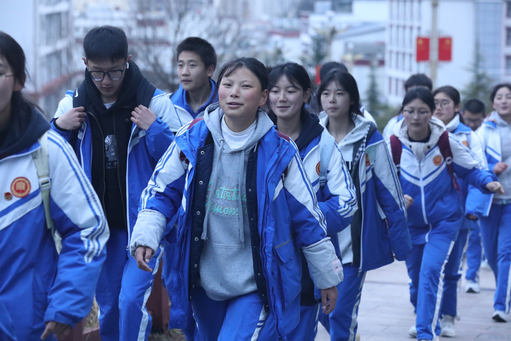 徒步中的康定中学学生。