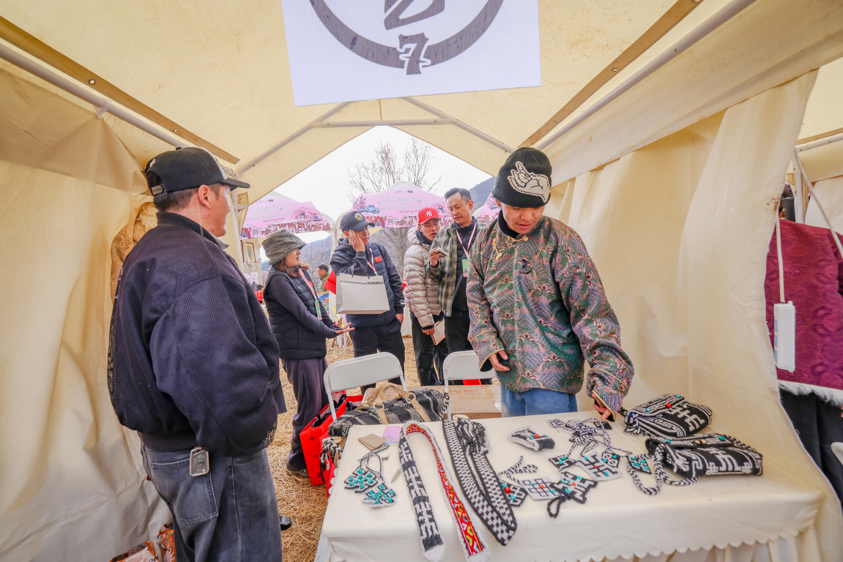 同期,“杏”好有你—非遗集市在麻湾村热闹开市,与花艺共创现场隔花相望。
