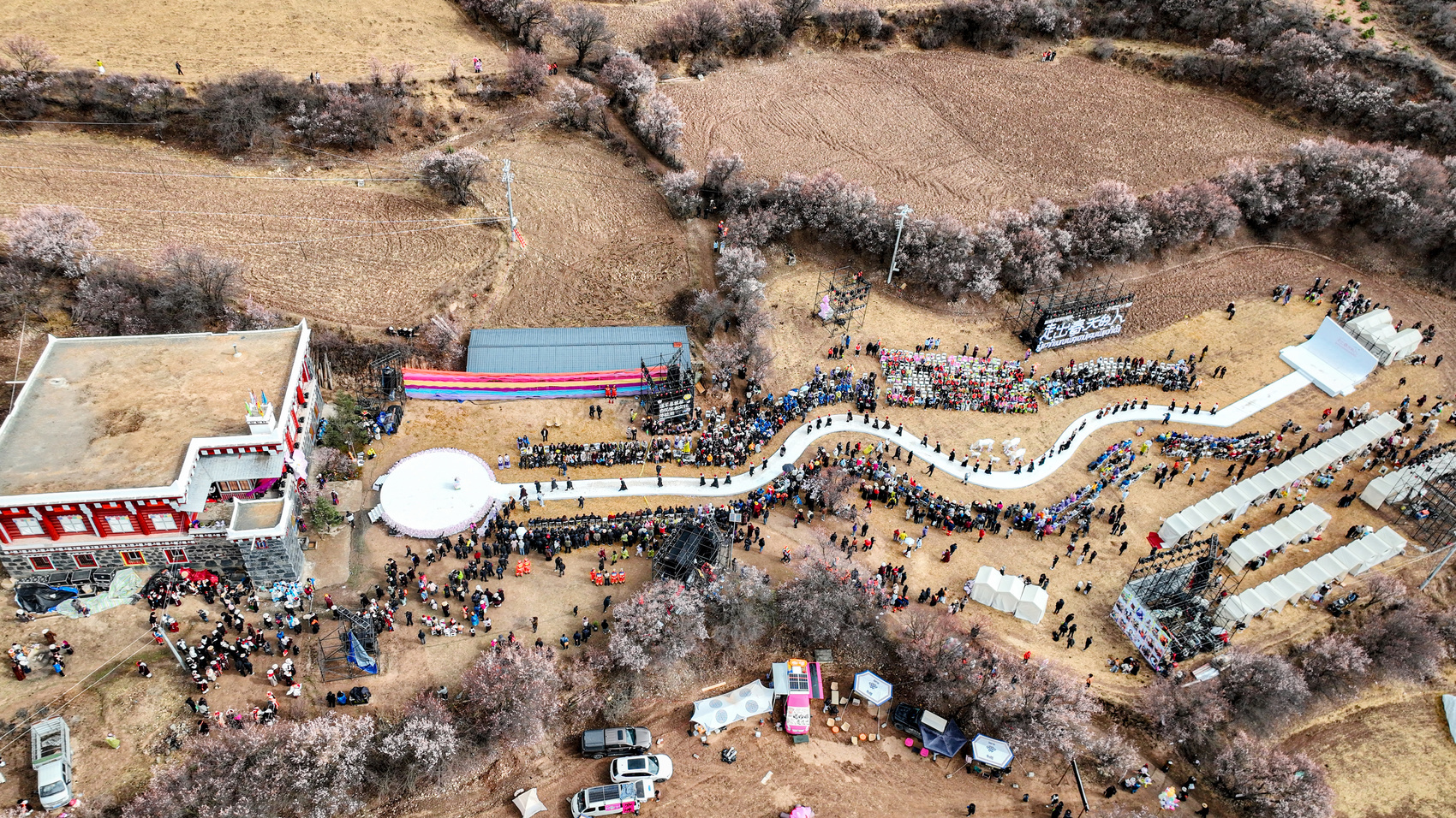 清晨的孔色乡麻湾村,蜿蜒山道被层层杏花缀满,一幅春日画卷徐徐铺展,“杏”花路放—藏寨漫游活动率先启幕。