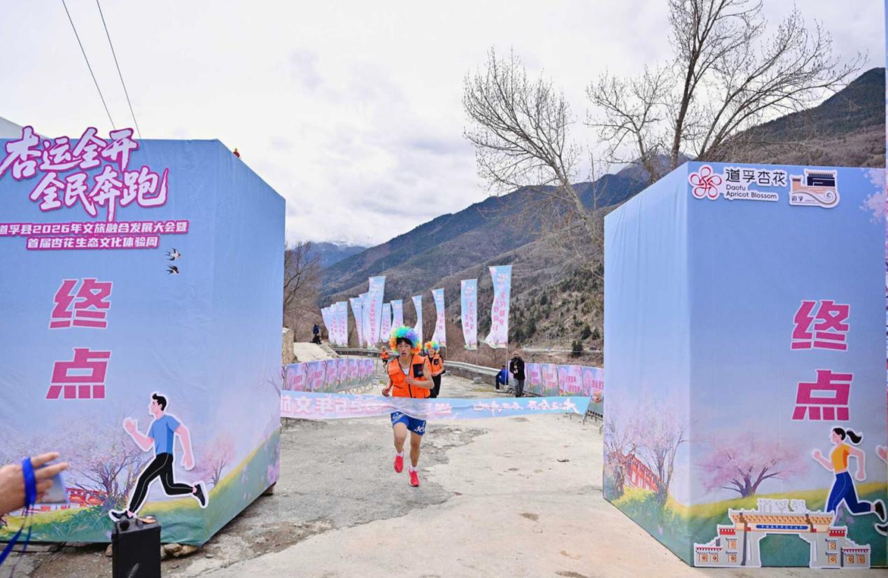 4月2日,2026年道孚县文旅融合发展大会暨首届杏花生态文化体验周系列活动之一“‘杏’运全开—全民奔跑”在孔色乡麻湾村浪漫开跑。