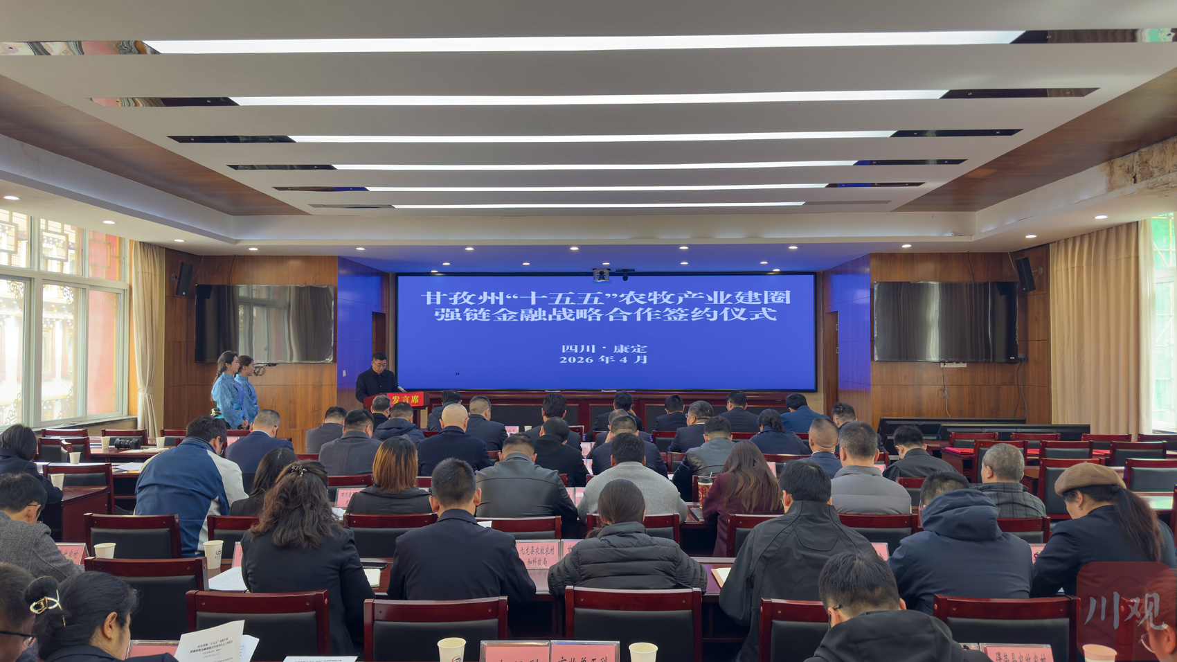 仪式现场,驻州各金融机构主动亮举措、献良策,依次推介金融支持乡村振兴的政策与创新服务模式,聚焦甘孜农牧产业特点,拿出针对性解决方案。