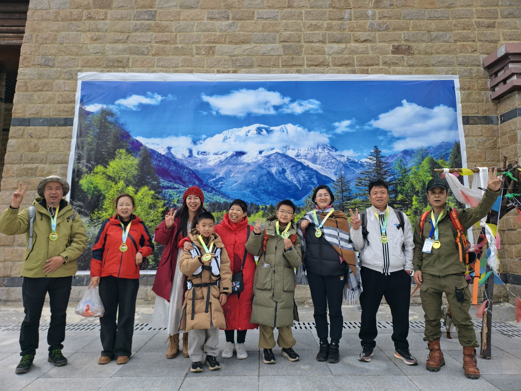 完成徒步打卡任务获得奖牌的游客在景区留影纪念。(景区供图)