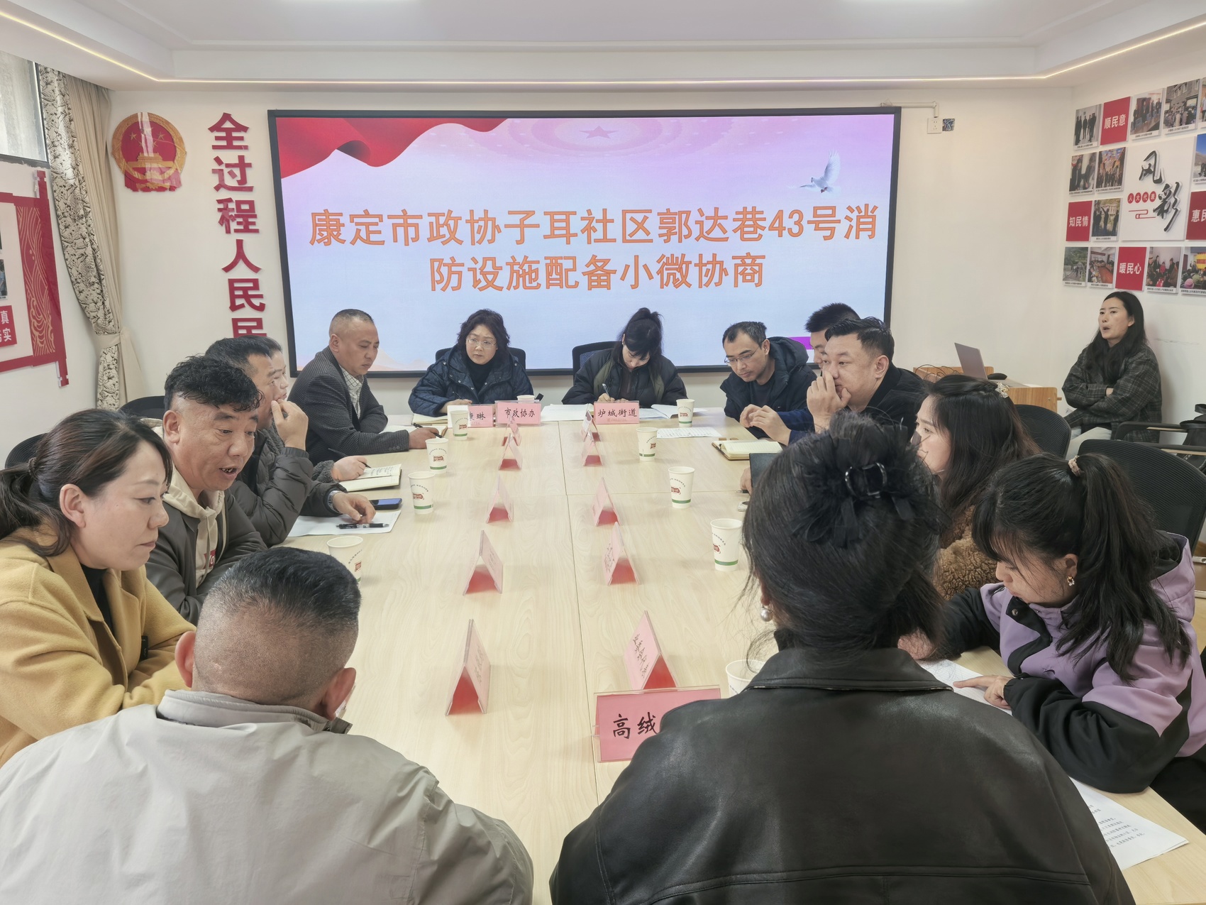 近日,一场主题为“消防设施设备配备”的小微协商会在康定市郭达巷社区党群服务中心温情开启。康定市政协办、市农牧农村科技局、市民政局、市住建局、市城市管理综合行政执法大队、市消防救援大队、炉城街道办、子耳社区、四川创厦建筑工程有限公司以及居民、业主代表围坐一室,共同聚焦前期排查出的社区安全隐患清单与群众核心诉求,通过面对面沟通、实打实研讨,全力破解社区治理中的堵点难题。